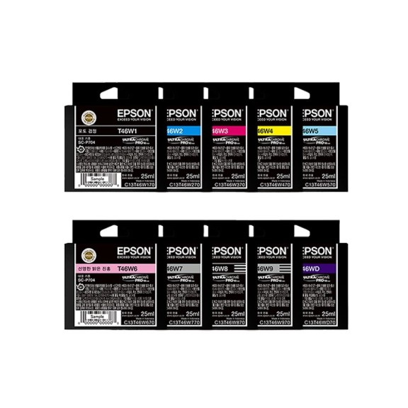 엡손 정품잉크 T46W1 포토블랙 T46W2 파랑 T46W3 선명한 빨강 T46W4 노랑 T46W5 밝은 파랑 T46W6 선명한 밝은 빨강 T46W7 회색 T46W8 매트검정 T46W9 밝은회색 T46WD 보라